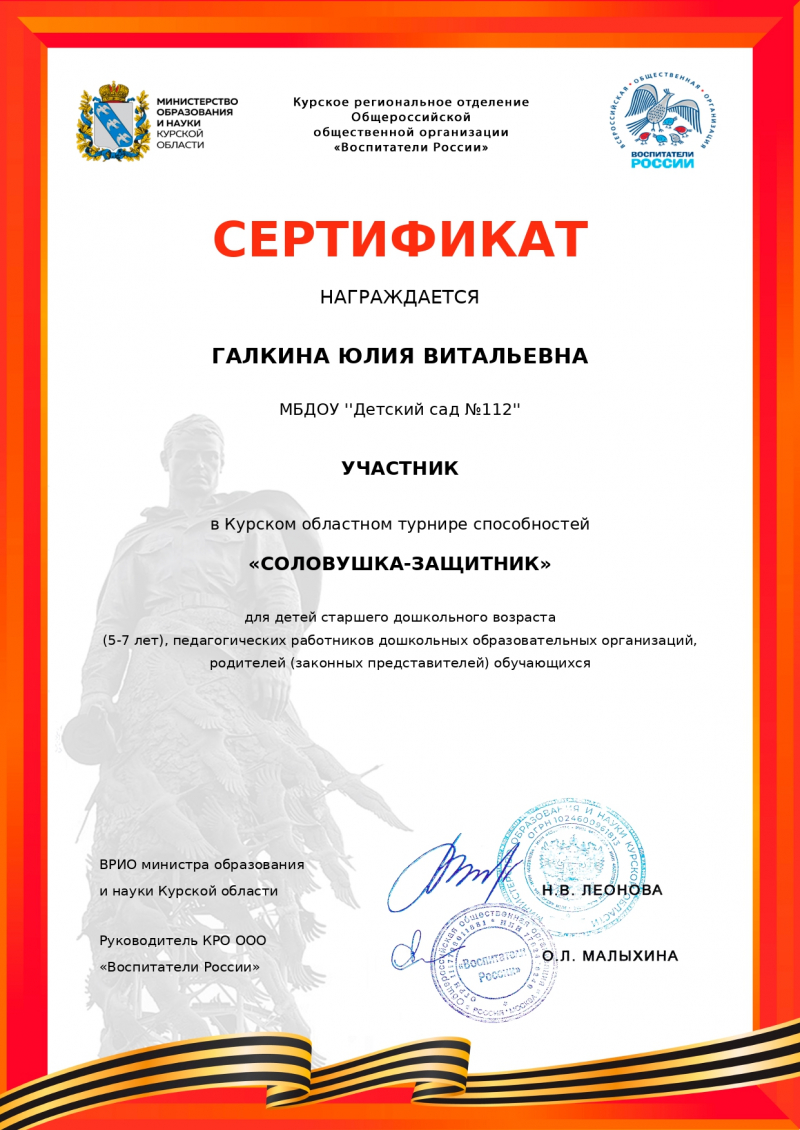 Сайт методиста МБДОУ "Детский сад №112" города Курска Галкиной Юлии Витальевны